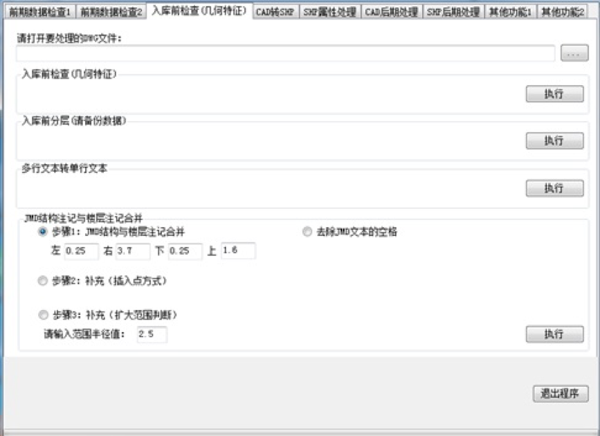 地形數據質檢及入庫工具軟件是根據實際的CAD數據入庫項目而研發的一款輔助檢查入庫的工具軟件,有著較強的項目適應性。主要功能有工程管理、數據庫建立、CAD數據檢查、格式轉換、拓樸處理、SHP數據檢查、數據入庫等。